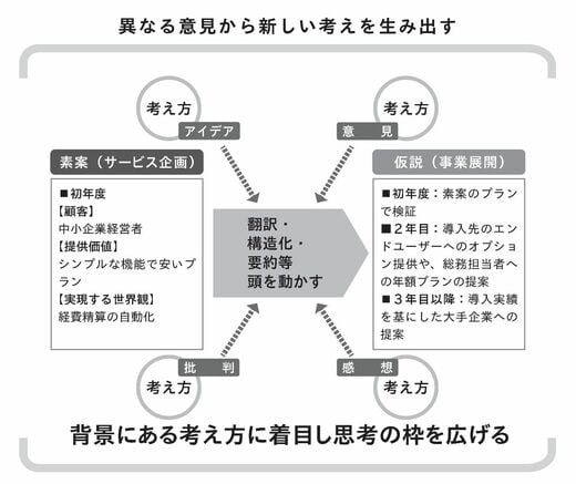 そのためにも、推進役を担う人は、メンバーの話に耳を傾け、感情的な言葉や些細な話にとらわれず、「私たちが顧客にすべきはこういう人で、提供価値はこれで、実現する世界観はこんなイメージではないか」と虚心坦懐(きょしんたんかい)に言えるようにしなくてはならないのです。