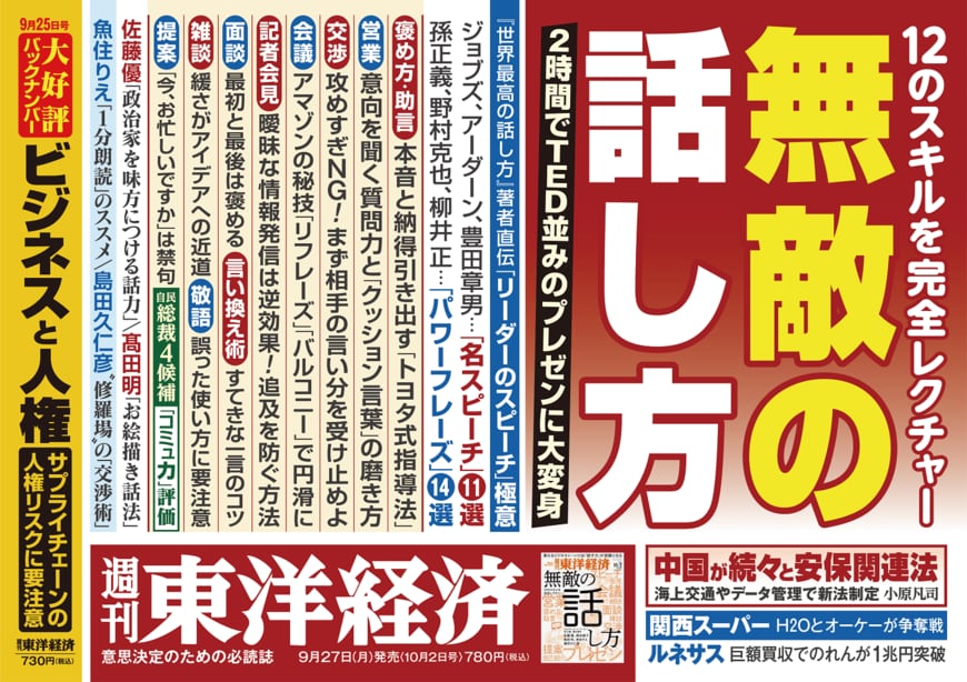 あとは声のトーンは高いほうがいい。「Yes, we can change」を連呼したオバマ元米大統領のように繰り返すことも大事だ。さらに間を取って話す。同じトーンで10分間、話を続けても相手には何も残らない。しゃべったときに3秒、5秒の間を置いて、相手に考える時間を与える。この間は「次の有を生み出す無」ということになる。