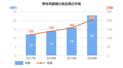 ※1 インテージSRI+ 男性用基礎化粧品 美白市場 2017年~2020年9-2月 累計販売金額/個数