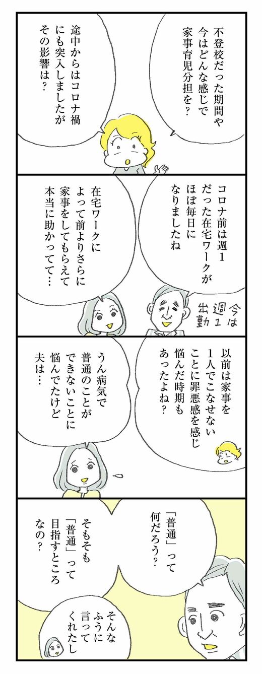 ライフ #ほしいのは「つかれない家族」 前の記事 次の記事 「家事はあきらめた!」専業主婦が決断に至った訳 3年にわたる娘の不登校を経て至った境地 4分で読める 公開日時:2021/10/17 10:00 ハラユキ イラストレーター、コミックエッセイスト フォロー 1/10 PAGES 2/10 PAGES コロナ禍以降の家事育児の分担 次ページが続きます:【できない自分を受け入れられるようになったから…】 3/10 PAGES 4/10 PAGES 5/10 PAGES 6/10 PAGES 7/10 PAGES 8/10 PAGES 9/10 PAGES 10/10 PAGES