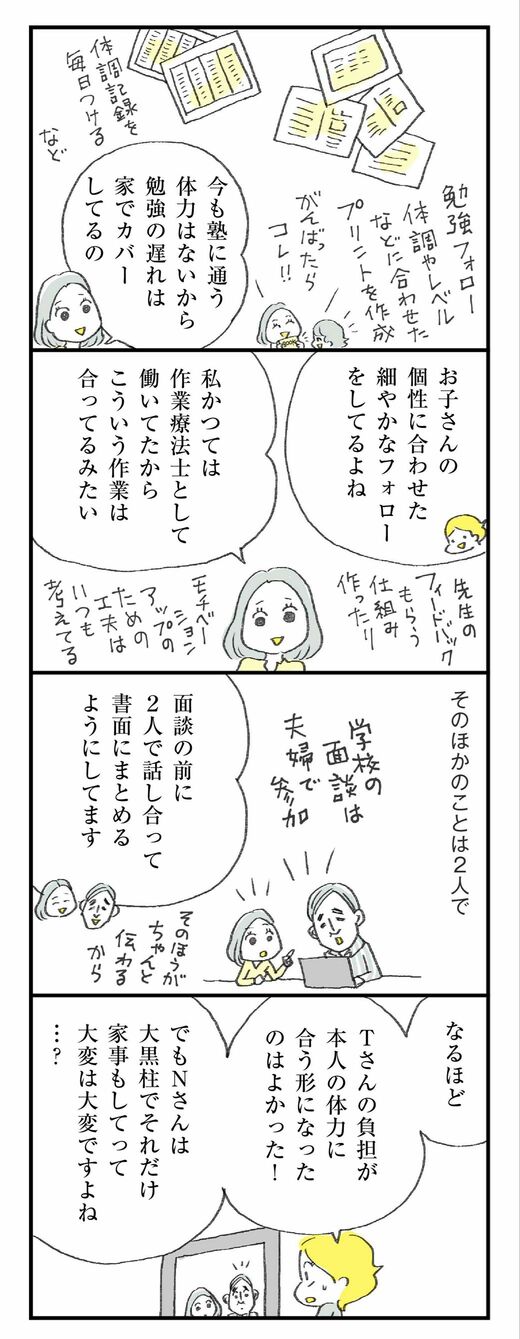 ライフ #ほしいのは「つかれない家族」 前の記事 次の記事 「家事はあきらめた!」専業主婦が決断に至った訳 3年にわたる娘の不登校を経て至った境地 4分で読める 公開日時:2021/10/17 10:00 ハラユキ イラストレーター、コミックエッセイスト フォロー 1/10 PAGES 2/10 PAGES 3/10 PAGES 4/10 PAGES Tさんの負担が本人の体力に合う形に! 次ページが続きます:【大黒柱のNさんのストレス発散法は?】 5/10 PAGES 6/10 PAGES 7/10 PAGES 8/10 PAGES 9/10 PAGES 10/10 PAGES