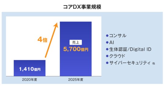 こうした強みを活かすことで、2025年度までにコアDX事業で4倍となる売上高5,700億円へ事業拡大を目指していきたいと考えています。