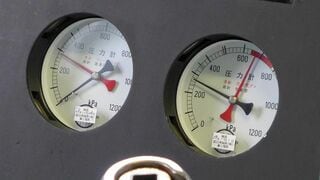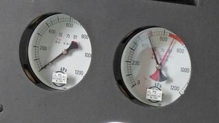 操作時の目安となるのは運転台に2つ並んだ圧力計だ。右側のメーターの黒い針がブレーキ管内の圧力、左側のメーターの赤い針がブレーキシューにかかる圧力を示しているが、「運転を始めて最初の1駅や2駅は車両のクセをつかむために計器を見るが、基本的には『お尻で感じる』んです」(運転車両部長・田島寛之さん)。制動力やタイミングを「体感」で把握することが重要なのだ。