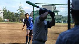 10月2日、千葉県柏市で第4回の練習会が行われた。この地の少年硬式野球チームの好意で球場を貸してもらったのだ。初めての屋外での練習会に全国から9人が参加した。後半はシートノック形式で行われ、参加者がバットで硬球を打ち、グラブをつけて守った。荻野氏が下から投げるボールを打っていく。
