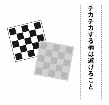 コントラストが生じやすい、ストライプや市松など規則性のあるパターン(柄)は、刺激になる可能性があります。ここでも影響の大きさを左右するのは色の組み合わせ。同じ柄でも、対比の強い白と黒、近似色のベージュとブラウンでは刺激の度合いが異なります。