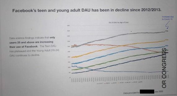 米フェイスブックの社内調査グループは3月、クリス・コックス最高製品責任者(CPO)向けに報告書をまとめた。掲載された一連のチャートやデータは、ティーンエージャーとヤングアダルト層でフェイスブックの人気が低下しているという厄介で加速しつつあるような傾向を浮き彫りにしていた。