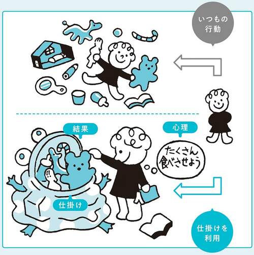 片づけは、子どもだけでなく大人にとっても面倒であまりやりたくないもののひとつです。でも仕掛けをうまく取り入れることで、片づけるつもりがなくてもいつの間にか片づいている状態にすることが可能です。「片づけて」「元に戻して」と伝えるだけでは人は動きません。