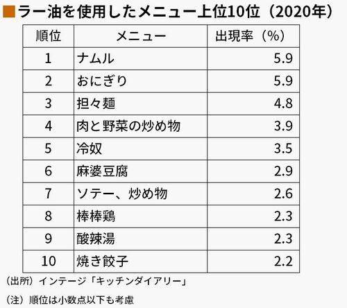 ところが、食べるラー油で広がった食の楽しみ方は、ブームから10年以上たった2020年でも定着していることがわかります。