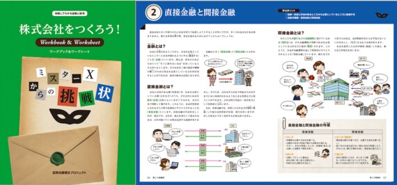 まず「株式会社をつくろう! ~ミスターXからの挑戦状~」は、主に中高生を対象としている。会社の仕組みに焦点を当てたもので、体験学習を通じて、会社の社会的な役割と責任、株式会社の仕組み、起業や金融の働きについて学べる体験型教材となっている。構成は、直接金融の仕組みや間接金融との違いを理解しやすいよう、3つのパートで構成されている。時間は1~4時間を要するため、分割学習も可能だ。導入実績は2020年度で全国約400校、約4万名の生徒たちに利用されている。