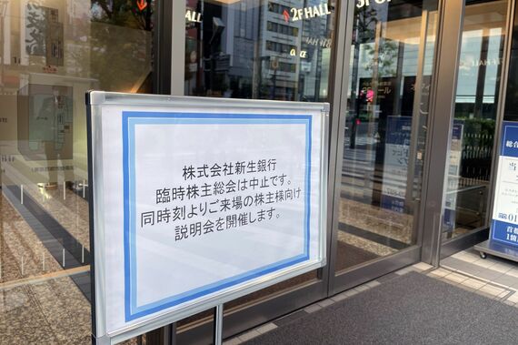 SBIホールディングスからの株式公開買い付け(TOB)に対抗する買収防衛策を一転、取り下げた新生銀行。防衛策発動の是非を諮るため25日に予定していた臨時株主総会も急きょ中止されたが、都内の会場にはTOBを巡る騒動に意見しようと複数の個人株主が来場し、新生銀も対応に追われた。