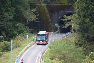 案の定、志津川の中心部を出ないうちに日は落ち、整備された区間もまだ少ない細道を進むものの、景色は見えない。昼間なら風光明媚な路線ではないかと想像しておく。終点の細浦入口は、丘陵地にある古い集落の中。すぐ真下を元はJR気仙沼線であったBRTの専用道が通っており、すぐ気仙沼行きがトンネルから出てきた。