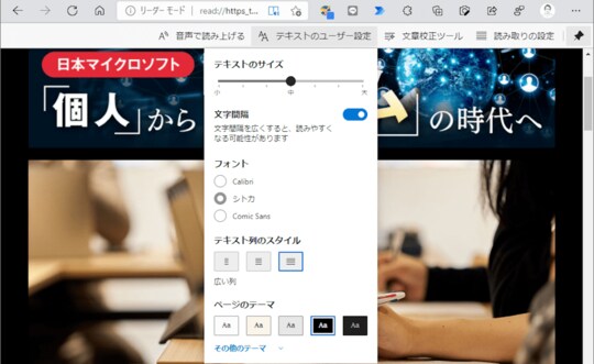 草場 利便性に配慮したアドオンの機能もあります。例えばWebページの広告を除いて表示し、音声でテキスト部分を読み上げる「イマーシブリーダー」という機能。音声読み上げ機能は英語にも対応しているのですが、米国英語やインド英語など細かく選べます。発音がネイティブに忠実で、読み上げスピードも変えられるので、英語の学習にも最適です。読み上げ以外にも品詞の色分けができるため、動詞や形容詞の勉強もできます。