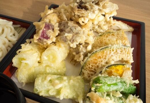 同じ野菜の天ぷらでも、「ごぼう」「にんじん」「さつまいも」「れんこん」「しいたけ」などは「スローの野菜」で、「なす」と「玉ねぎ」は「ニュートラルの野菜」なので、うどんと一緒に食べて問題ありません。