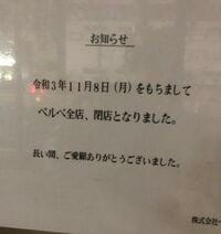 「都合により本日をもって、ベルベ全店の営業を終了させて頂くことに致しました」―。