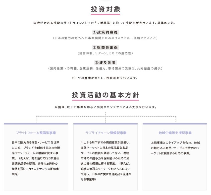 「官民ファンドということになると、民間でやればいいじゃないかという話は必ず出てきます。じゃあ、民間ファンドが小さなコンテンツビジネスとか、地方のモノづくりとかの海外進出案件に、投資ができますか? 民間ができないから、官民で一緒になってやるというファンドなのです。それ以外にも、そもそも官がやることがクールじゃない、という批判もあります。官が事業をやるなら確かにクールじゃない。でも、私たちがやるのは民間にあるクールなモノに投資をしてお手伝いすることです」
