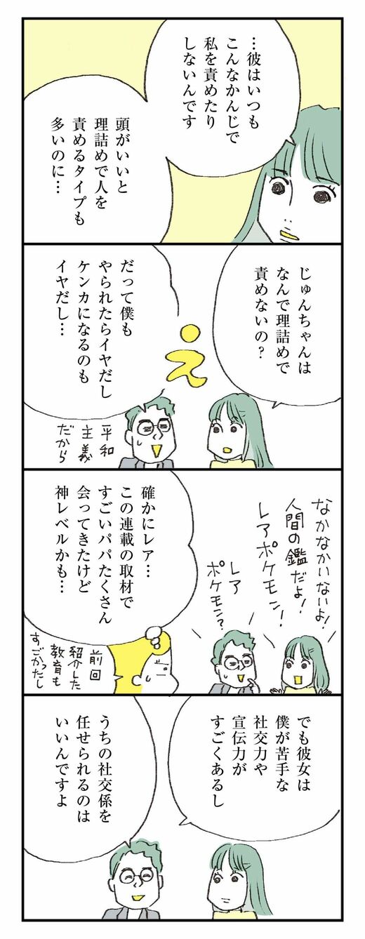 ライフ #ほしいのは「つかれない家族」 前の記事 次の記事 妻に「レアポケモン」と呼ばれる理系夫の凄い家事 理系だけど「理詰めで責める」はしない 3分で読める 公開日時:2021/12/12 10:00 ハラユキ イラストレーター、コミックエッセイスト フォロー 1/9 PAGES 2/9 PAGES 3/9 PAGES 4/9 PAGES 5/9 PAGES 6/9 PAGES 7/9 PAGES 理詰めで責めない 次ページが続きます:【得意分野が違う2人】 8/9 PAGES 9/9 PAGES