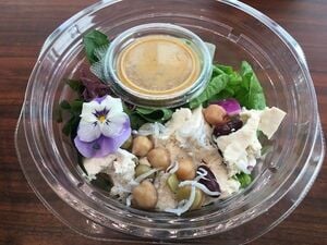 特徴は協力工場でカットした新鮮な産直野菜を使用し、たんぱく質も含め200gほどとボリュームもある、栄養バランスのよいサラダとしているところだ。種類は「スモークサーモンとチーズの贅沢サラダ」「国産丸大豆の島豆腐とお豆のプロテインサラダ」など6種類。価格は980円で統一している。