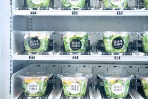 SALAD STANDはその新鮮野菜を使ったサラダに特化し、オフィスの冷蔵庫を自販機に置き換えたもの。
