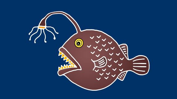 チョウチンアンコウは暗い海の底に暮らす深海魚である。