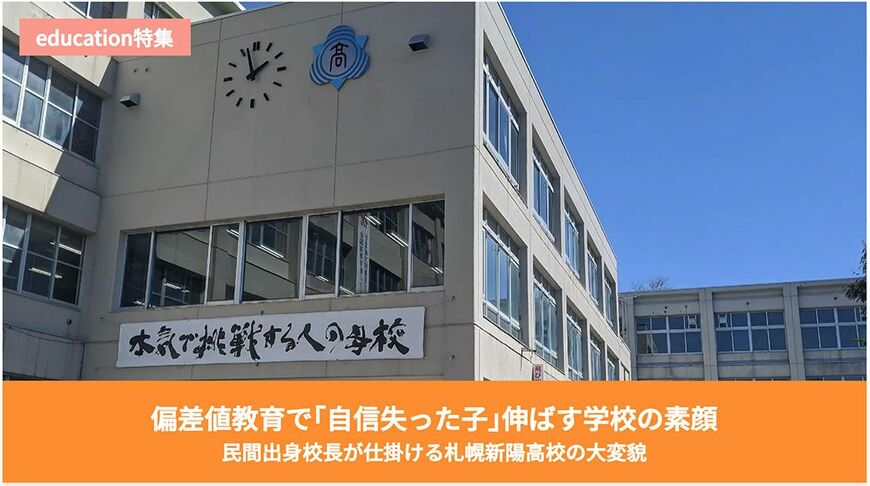 そんな偏差値教育で自信を失った子、がんじがらめの教育になじめない子の可能性を引き出そうと奮闘する校長がいる。札幌新陽高等学校の荒井優氏だ。「偏差値教育で『自信失った子』伸ばす学校の素顔」では、ソフトバンクの社長室から学校長に転身した民間出身の荒井氏の改革に迫った。