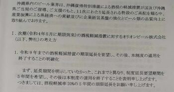 ビール工場の刷新や製缶工場設備など140億円規模の投資計画で雇用を生むこと。テーマパーク計画事業体に5億円出資して観光産業を支援すること。貧困家庭・シングルマザーの就業支援をすること。原材料に県産大麦を用いて農業支援することなど、オリオンが沖縄経済に貢献することを説いたうえで、税制の「配慮」を求めた。