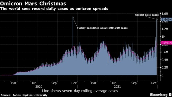 研究によると、オミクロン株は従来の株に比べ70倍のスピードで感染するが、ワクチンやブースター(追加免疫)接種を受けた人の重症化リスクは低い。それでも感染急拡大で世界的に医療逼迫(ひっぱく)の恐れがあり、各国政府はクリスマス休暇明けの感染および入院の急増を警告している。