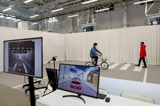 fMRIの被験者(現時点で約300名)による検証では、なるべく現実に近い運転環境に近づけて仮想空間(バーチャル映像内)を走行させた。そして映像内で発生する危険な状態、例えば他車の急な割り込みなどに対して、運転操作や身体的な反応を計測する。さらに、割り込み前後の脳活動の変化までもfMRIによって細かく画像として記録した。