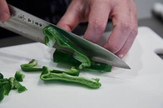 ピーマンのほか、マッシュルームやシメジ、ニンジンなど冷蔵庫にある野菜でOK(写真:吉澤健太)