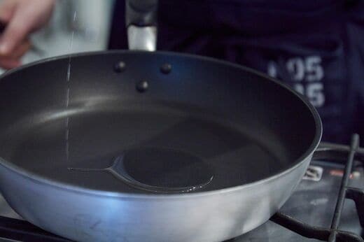 ジュワ~ッと音がするくらい、フライパンを温めておきましょう(写真:吉澤健太)