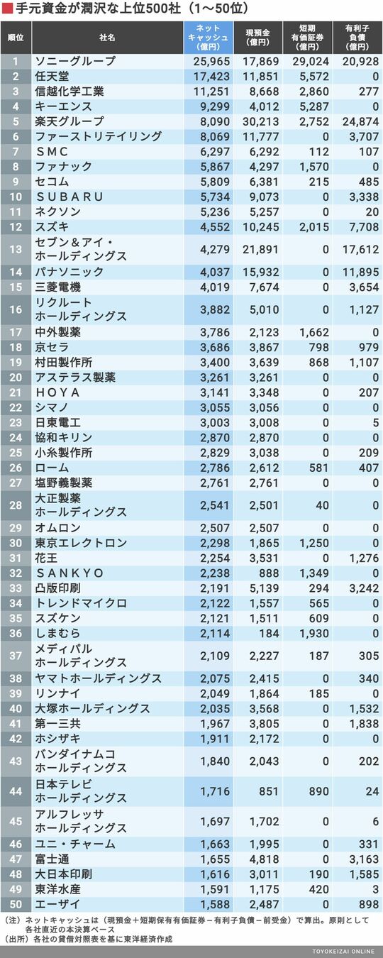 政治・経済・投資 最新!これが「金持ち企業」トップ500社だ 1位はソニーグループ、2位に任天堂がランクイン 3分で読める 公開日時:2022/01/13 06:00 東洋経済オンライン編集部 フォロー 1/11 PAGES 2/11 PAGES 次ページが続きます:【次に100位までのランキング】 3/11 PAGES 4/11 PAGES 5/11 PAGES 6/11 PAGES 7/11 PAGES 8/11 PAGES 9/11 PAGES 10/11 PAGES 11/11 PAGES