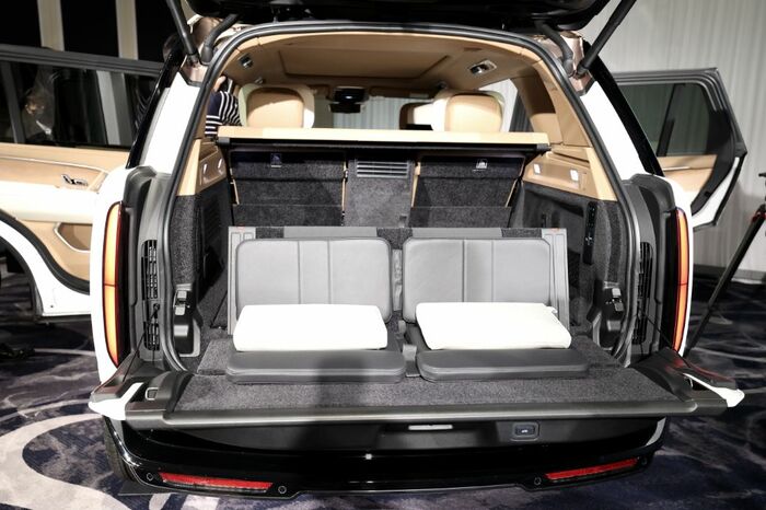 ボディーバリエーションはスタンダードのSWBとロングホイールベース(LWB)が用意され、4/5/7人乗りの仕様から選べる。7人乗りが設定されるのはレンジローバーとして初めて。全長5052×全幅2047(ミラー折りたたみ時)×全高1870mmで、旧型比でわずかに拡大された。ホイールベースはスタンダードで2997mm。LWB版はホイールベース部分のみ200mm延長される。