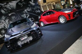 ほかにも今回のブースでは、コンパクトカー「ヤリス」のスポーツ仕様「GRヤリス」をベースに、よりパワーなどを向上させた「GRMNヤリス」を初披露した。500台限定で2022年夏頃より発売を予定するこのモデルも競技用車両だ。オンロード競技を見据えた「サーキットパッケージ」と、オフロード競技向けの「ラリーパッケージ」を用意する。