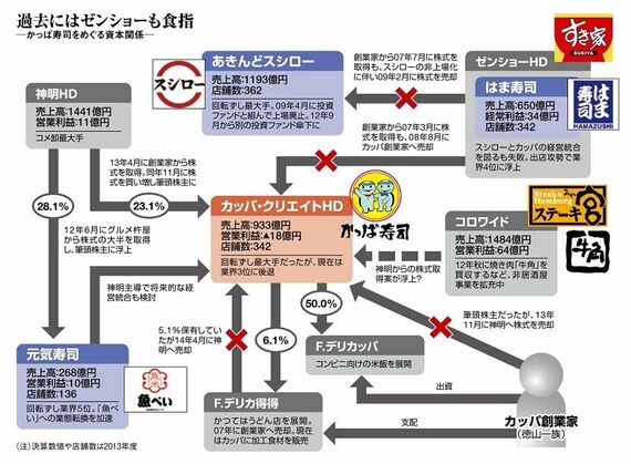 ゼンショーは当時、あきんどスシローの株式も取得し、2社の統合により回転ずし業界のトップに立つ野望を持っていた。だが、現場の衝突が激化し、統合計画は停滞。結局、カッパの創業家が株を買い戻すことになり、ゼンショーの夢は1年でついえた。