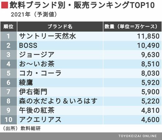 だが近年は「BOSS」が猛追。ここ数年は抜いたり抜かれたりを繰り返す。BOSSは2017年から販売する「クラフトボス」が好調で、ブランドの上乗せを果たした(最新の数字は下表)。
