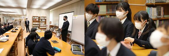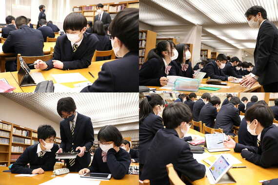 こうした学びを踏まえ、3学期は年度末のまとめの会議である「地球温暖化」と「水問題」に取り組む。2022年1月中旬に見学した3年1組の授業では、図書室で各国の方向性の調整が行われた。橋本教諭が予定の確認と世界のニュース紹介を行った後、生徒たちはまず自国の状況と会議で目指す内容について大使団内で話し合いをスタート。