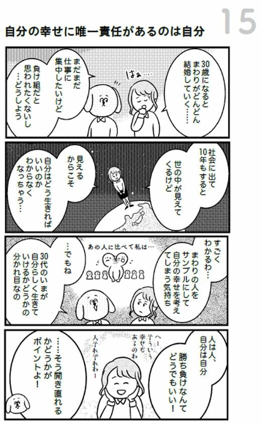 でも、よく考えてほしい。だれが、自分のことを幸せにしてくれるというのでしょう。世間一般で考えられている幸せのイメージや、人の幸せをまねてみたところで、自分が幸せになれるわけではないのです。