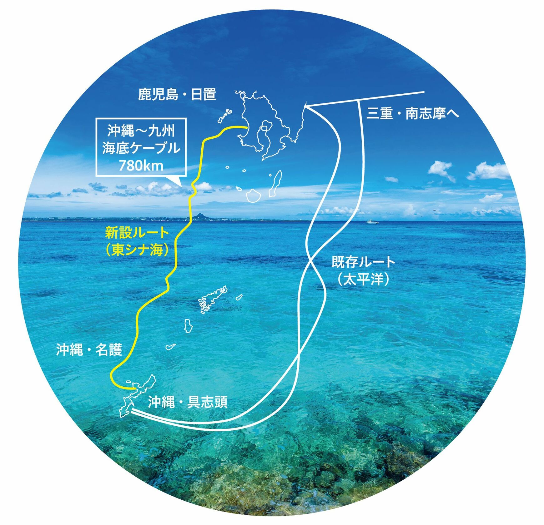 沖縄セルラーが敷設した、沖縄と本土を結ぶ海底ケーブル。既存の東ルート(太平洋側に)と合わせて、東西2ルート化が実現した