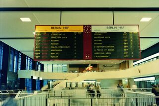 一方、現存する「パタパタ」で迫力があるのは、ドイツ・フランクフルト空港の第1ターミナルにある装置だろう。多数の航空便が発着する同空港だが、およそ半日分の出発便が表示されるだけでなく、よく見るとルフトハンザ航空の便名が付いた国内線フライト扱いの列車も示している。ただ、空港内の鉄道駅にある案内ボードはすでに液晶式に交換されているのが残念だ。
