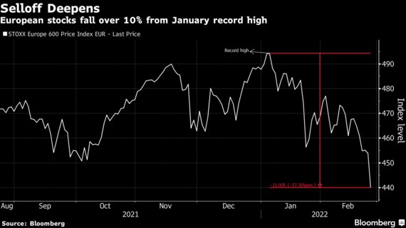 原題:European Stocks Slump as Russia’s Ukraine Attack Sparks Selloff