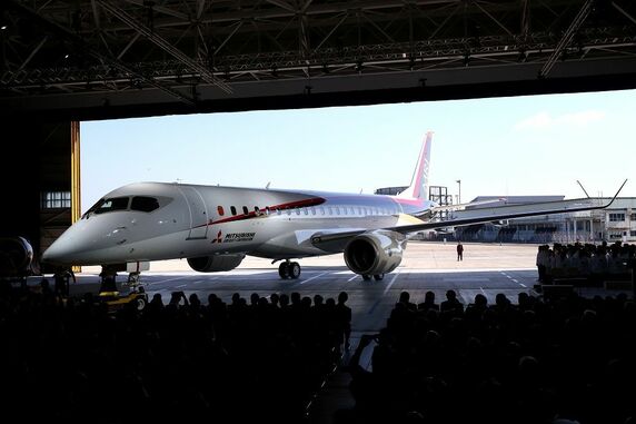 10月18日、三菱重工は名古屋空港に隣接する小牧南工場でロールアウト(完成披露)式典を開催。関係者ら500人以上を招き、飛行試験用の初号機を初公開した。式典であいさつに立った三菱重工の大宮英明会長は「自分たちの手で国産旅客機を送り出すことは、長年の夢だった。最高レベルの経済運航性と快適性を兼ね備えた国産旅客機が形となり、ついに夢が現実に変わる」と熱い思いを口にした。