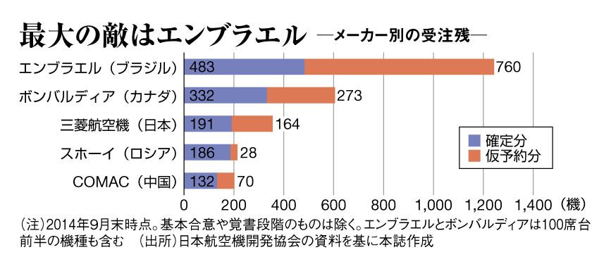 MRJの受注機数は8月に日本航空と基本合意した分などを含めて407機。突出した燃費性能などを武器に海外の航空会社からも受注を獲得しており、「新規参入で、かつ、飛んでもいない段階としては上出来の数字」(三菱航空機の川井社長)ではある。