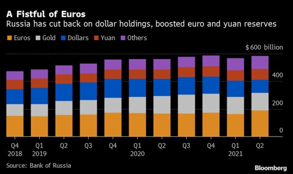 ボレル氏は週末、西側諸国は「モスクワや中国にあるロシア中銀の準備資産をブロックできない」と指摘し、ロシアは過去数年にわたりドル資産を減らし、一部の準備資産をユーロと人民元に置き換えることで、こうした状況に備えてきたとの見方を示した。