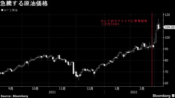 ウクライナ情勢の緊迫化に伴い、原油価格は前回1月の金融政策決定会合時の1バレル=85ドル程度から足元で同110ドル程度に急騰している。政府は4日、原油価格高騰を受けて関係閣僚会合を開催し、石油元売り会社に支給している補助金の上限を1リットル当たり5円から25円に引き上げる激変緩和措置の拡充を決めた。