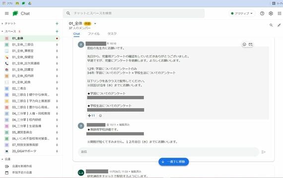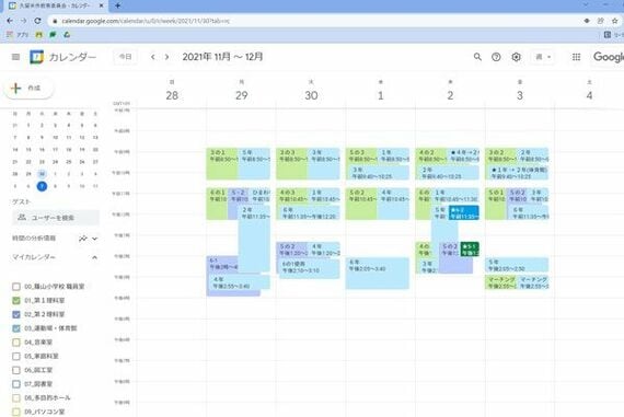 篠山小では、授業でも使っている「Google Workspace for Education」を用いて学校全体の情報共有を進めた。これまで紙やホワイトボードで行っていた月行事や週行事、毎日の伝達事項をスプレッドシートでクラウド上にアップし、職員室のモニターと各教員の端末からいつでも見られるようにしたのだ。