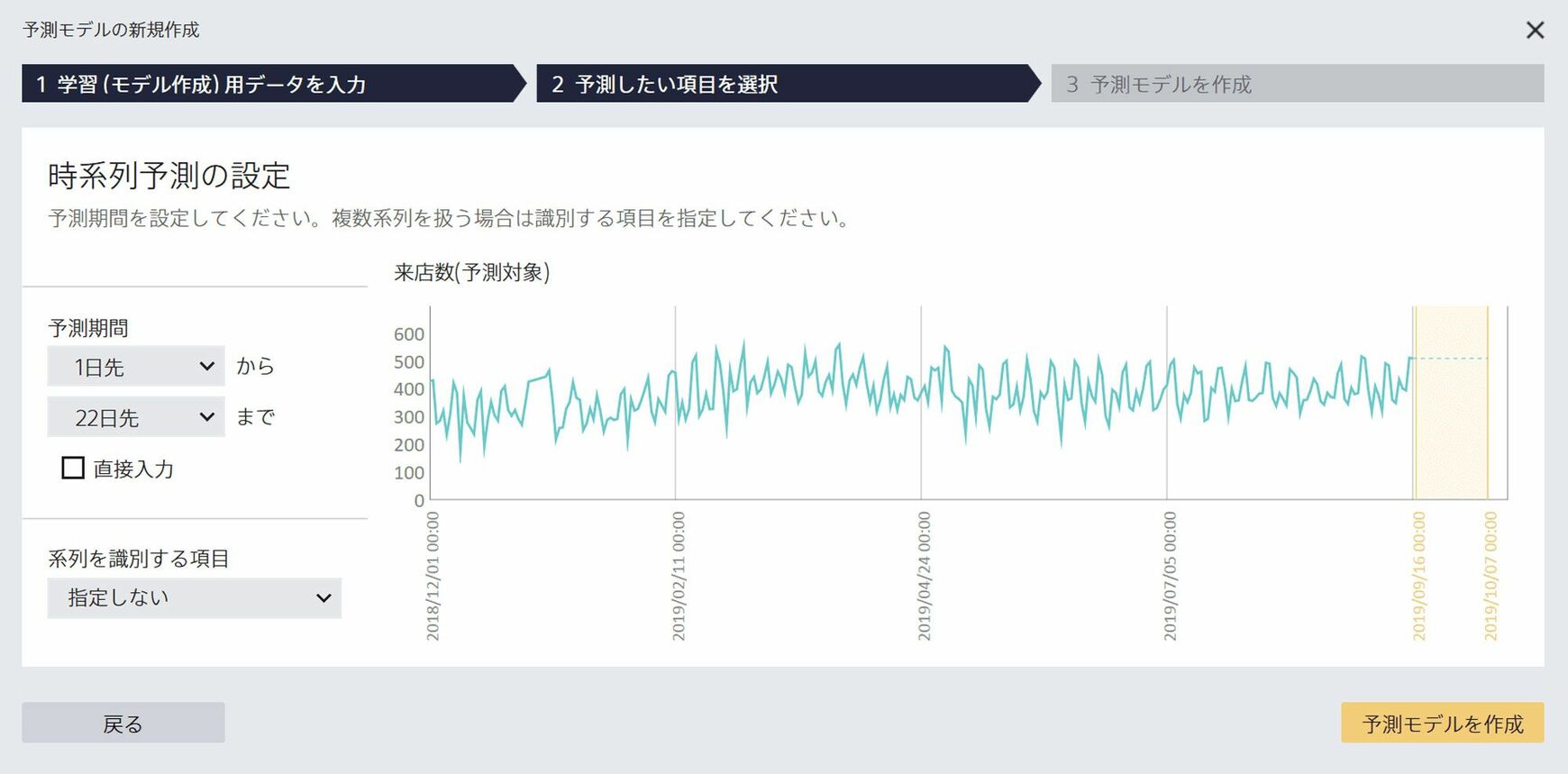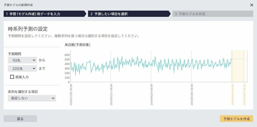 「Prediction One」来店数の予測分析画面イメージ