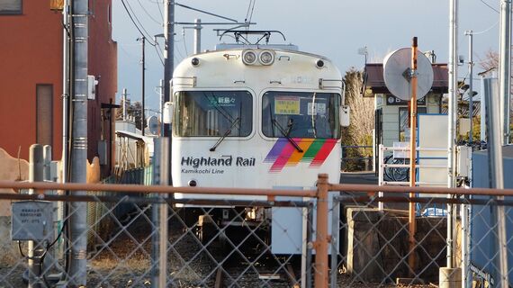 アルピコ交通上高地線は、JR松本駅を起点に上高地の玄関口である新島々駅まで約14.4kmを結ぶローカル線。白地にカラフルなストライプを入れた2両編成の電車が通勤・通学の足として走る。沿線に目立った観光地や絶景の車窓はないが、終点の新島々は上高地や乗鞍方面に向かうバスへの乗り継ぎ拠点となっており、観光シーズンは登山客らで賑わう。利用者数は一時期減少が続いたものの、2010年代に入ってからは増加傾向だった。
