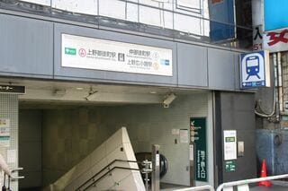 JR御徒町駅のすぐ側、西側には東京メトロ銀座線の上野広小路駅、東側には日比谷線の仲御徒町駅がある。お互いに十分、乗り換え駅として使える位置関係ではあるが、隣が両線とJRが接続するターミナル駅の上野であるため、接続の案内は積極的には行われていない。