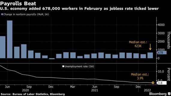 米連邦準備制度の元研究者は3.8%となった2月の米失業率について、自ら算出した完全雇用の水準を大きく下回っており、賃金上昇が加速した一因だとの見方を示した。米金融当局は2018年以来となる利上げを準備している。