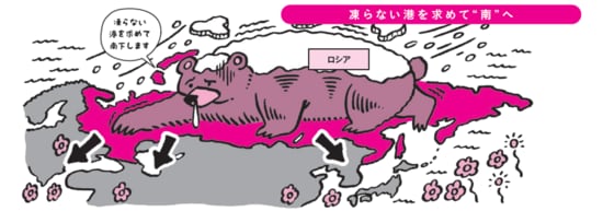 イギリスやスペインなどの当時のヨーロッパの先進国が海洋に進出して貿易などで巨万の富を得ていくさまを目の当たりにしたロシアは、一年中凍らないで使える港を求めました。以降、不凍港獲得を目指した領土拡張策「南下政策」はロシアの国是になり、ロシア・トルコ戦争、クリミア戦争、第一次世界大戦などの一因にもなりました。