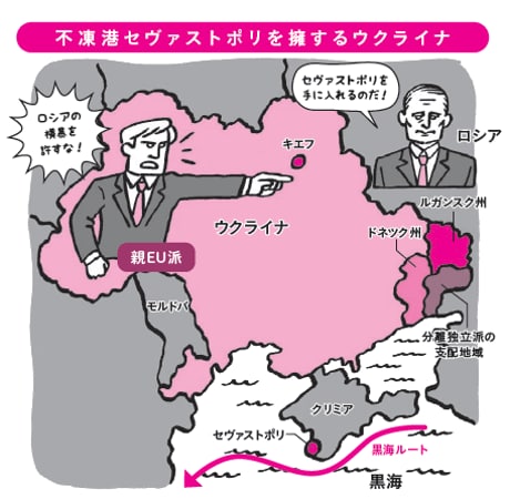 半数以上をロシア系住民が占めるクリミアには、不凍港の軍事拠点セヴァストポリがあります。この港を手に入れることは大西洋に進出するための「黒海ルート」周辺を押さえることを意味するので、地政学的にクリミア併合はロシアにとって重要な戦略だったのです。
